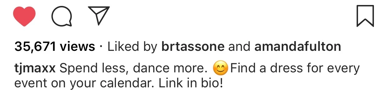 As a Senior Copywriter for T.J.Maxx, I lead copy for all digital & retail marketing initiatives. I brainstorm concepts for Instagram posts, write clever Facebook captions, assist with art direction on Snapchat ads, and execute chain-wide retail seasonal sign packages, seen by hundreds of our loyal shoppers.